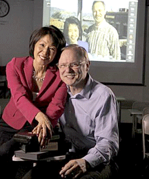 The Chron’s Peter Hartlaub reports that the former co-hosts of Channel 5’s “Evening Magazine,” Jan Yanehiro and Richard Hart, have reunited to teach at the Academy of Art University in San Francisco. Their show aired on KPIX from 1976 until 1991. Hartlaub writes, “Yanehiro, 62, and Hart, 61, still finish each other’s sentences, and will occasionally step outside together to show students how to work a live shot. “Evening” fans passing by the downtown San Francisco campus must be surprised to run into the pair, especially considering how little they’ve aged in 20 years.” (Photo credit: Lacy Atkins, Chronicle)