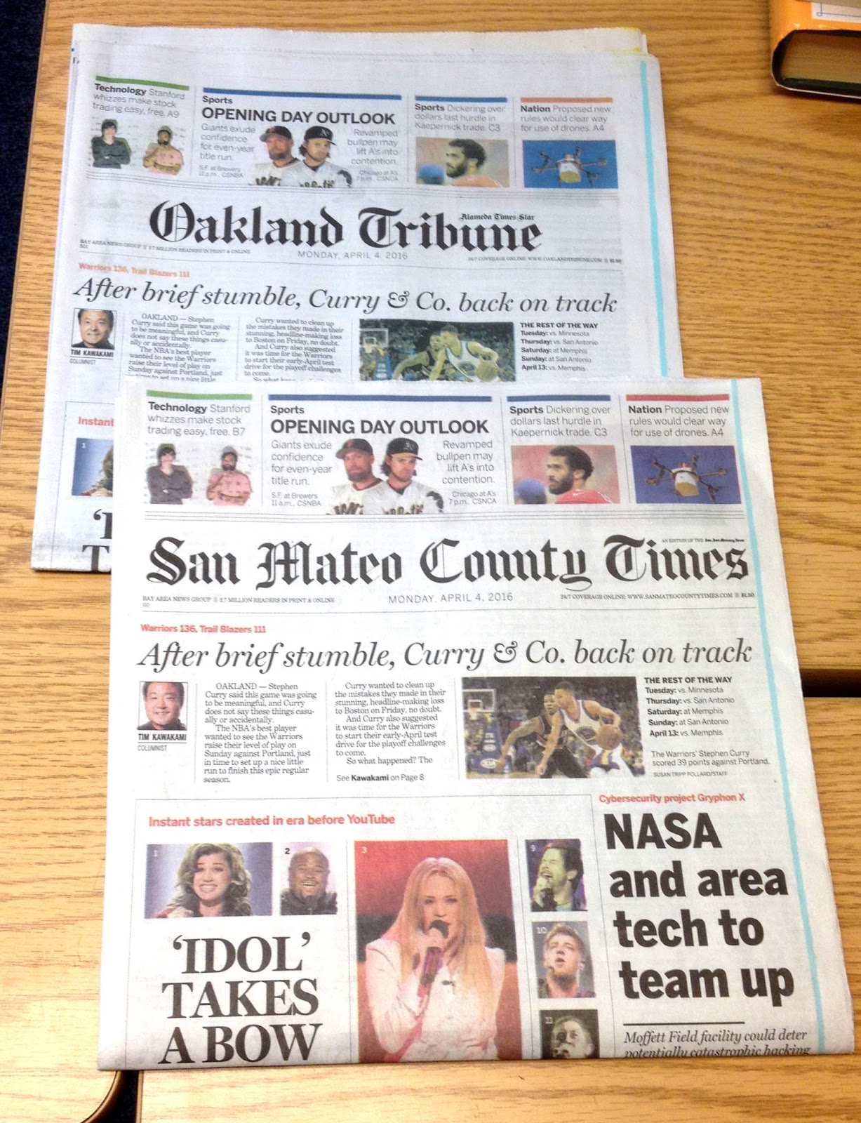 After 142 years, the Oakland Tribune today printed its last edition. So too did the San Mateo County Times. The Trib will be replaced Tuesday morning by the East Bay Times, a consolidation of the Tribune, Contra Costa Times, the Daily Review in Hayward and The Argus in Fremont. Similarly, the San Mateo County Times will become the Mercury News. The South Bay paper is dropping “San Jose” from its name. The consolidation came with about 20 layoffs in the newsrooms of these publications. All are apart of the Bay Area News Group. Subscribers in Oakland, Fremont and Hayward will receive news inserts bearing the old dailies’ names each Friday.